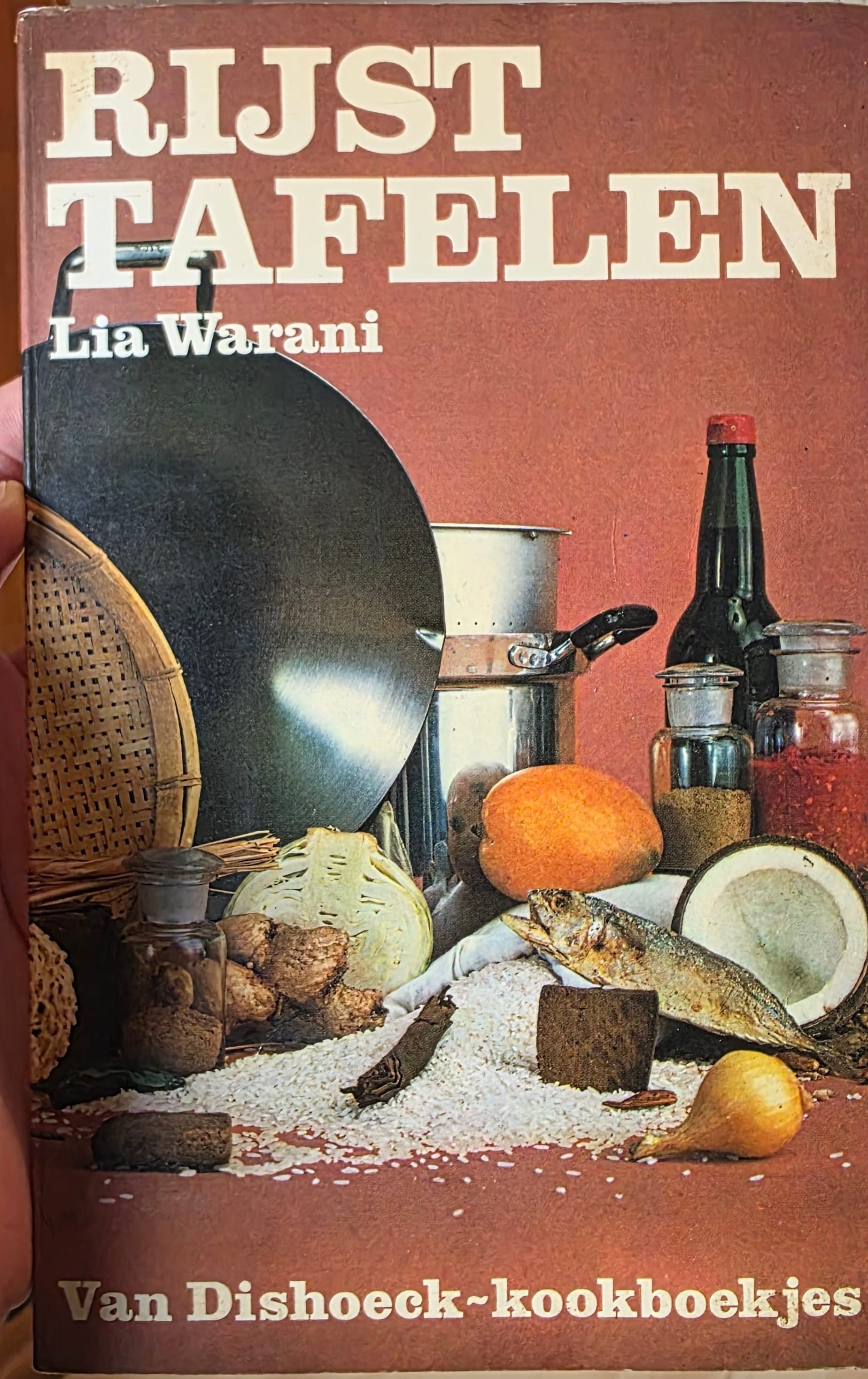 J'en veux pour preuve le livre de cuisine reçu par ma mère, le jour de son mariage : RIJSTTAFELEN de Lia Warani. Sous-entendu : "Ma petite, la cuisine indonésienne, c'est la base". La couverture le confirme sans ambiguïté : "Rien dans notre pays n'est aussi populaire que la cuisine indonésienne."